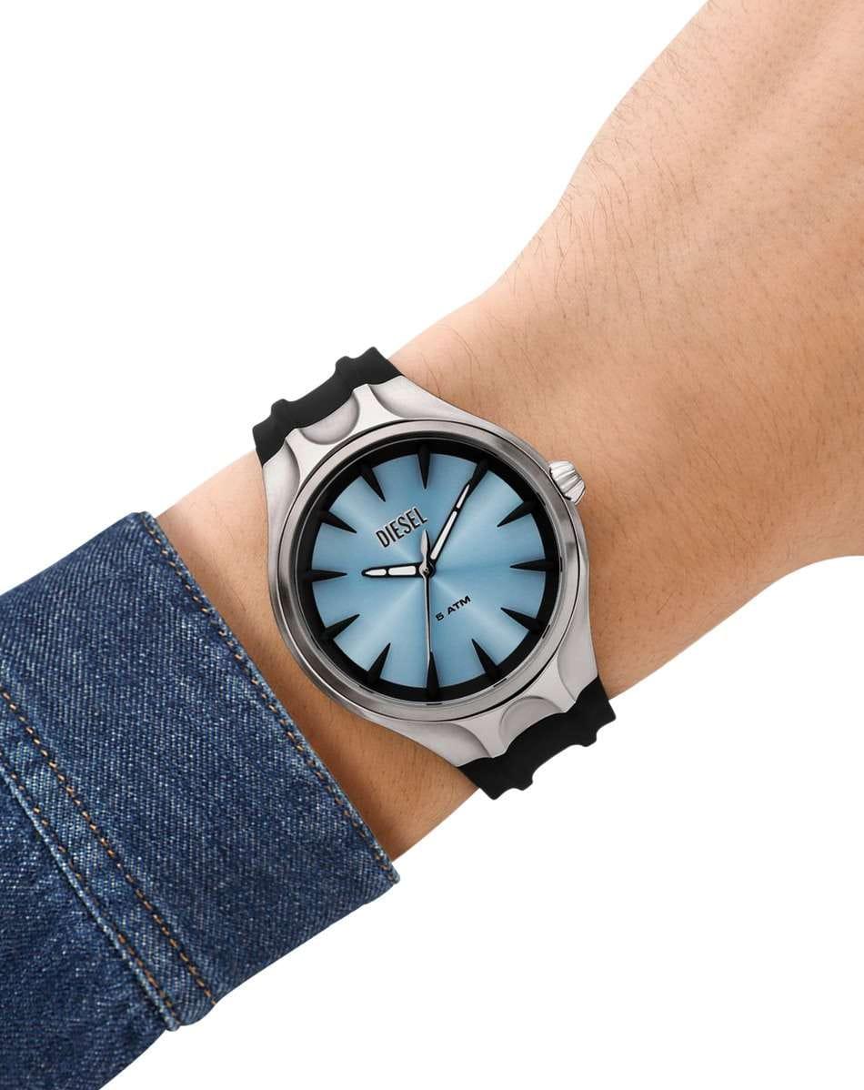 Дизайнерские часы Diesel Streamline DZ2216 представляют собой стильный аксессуар, который великолепно подчеркивает индивидуальность и вкус своего владельца. Они оснащены кварцевым механизмом, обеспечивающим высокую точность хода. Круглый корпус выполнен из нержавеющей стали с сочетанием матовых и полированных деталей, дополненных черным покрытием, что придает часам современный и элегантный вид. Голубой циферблат, украшенный логотипом бренда, изготовлен по технологии Sunray, создающей эффект солнечных лучей, и надежно защищен минеральным стеклом. Метки на циферблате выполнены в виде штрихов, что добавляет изысканности дизайну. Рифленая заводная головка обеспечивает удобство в настройке времени. Для комфортного ношения предусмотрен силиконовый ремешок с классической застежкой. Часы обладают классом водозащиты 5 бар (50 метров), что позволяет не беспокоиться о попадании воды при мытье рук или прогулке под дождем. Стрелки с люминесцентным покрытием обеспечивают удобное считывание времени в темноте после кратковременного пребывания на свету, что делает эти часы практичными в любых условиях.