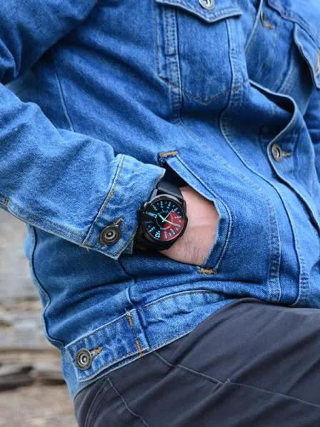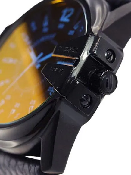 Точный кварцевый механизм. Центральная секундная стрелка. Окошко даты. • Точность хода не хуже -10 +15 сек./в месяц. • Минеральное стекло устойчивое к возникновению царапин. • Корпус из высококачественной нержавеющей стали со стойким PVD покрытием. • Водозащита до 10 АТМ. • Кожаный ремешок. • Размеры корпуса 51 мм (по оси заводной головки, включая головку) х 45 мм (по вертикали) х 12 мм (толщина). • Вес 85 грамм.