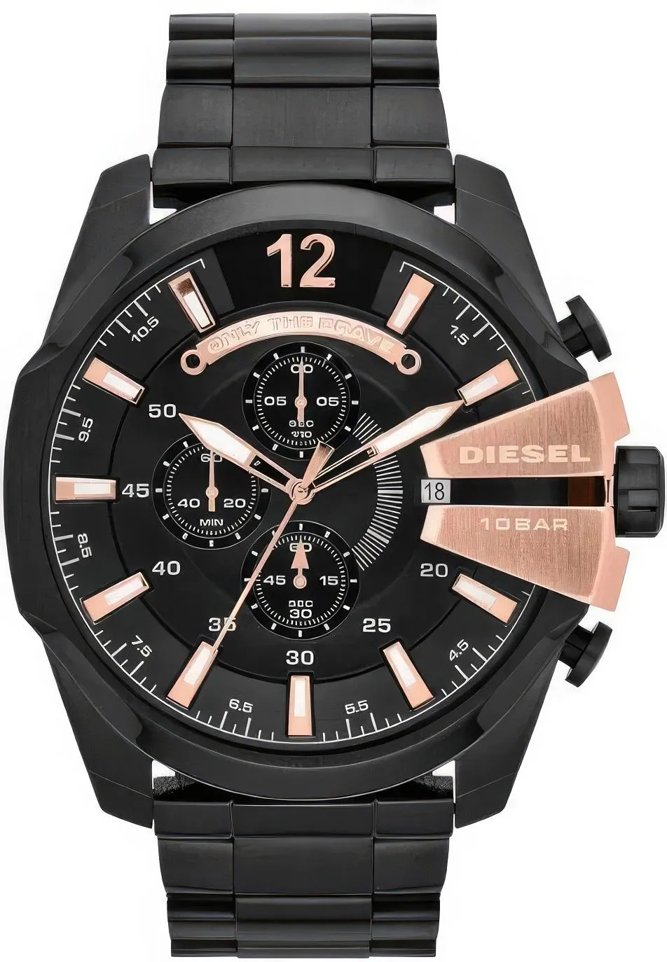 Крупные мужские наручные часы с хронографом, выполнены из черненой нержавеющей стали со стойким PVD покрытием.