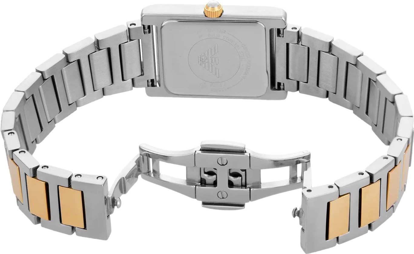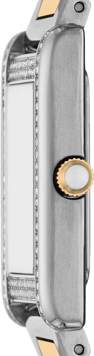 Эти женские наручные часы — воплощение изысканного вкуса, где гармонично сочетаются строгая геометрия и сияющая роскошь. Прямоугольный стальной корпус обрамлен сверкающим безелем с кристальным паве. Мерцающий перламутровый циферблат украшен классическими римскими цифрами и штрихами, а изящная заводная головка с кабошоном добавляет модели утонченный акцент. Завершает образ элегантный стальной браслет с раскладывающейся застежкой, обеспечивающей удобство ношения.