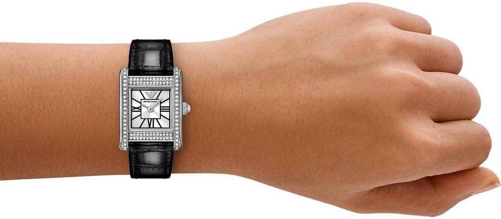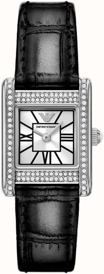 Модель Emporio Armani Classic AR11660 — это эталон сдержанной роскоши. Мерцающий серебристый циферблат, украшенный кристаллами, заключен в классический круглый корпус. Элегантный черный кожаный ремешок подчеркивает дизайн, обеспечивая комфорт и универсальность. Высокоточный кварцевый механизм, минеральное стекло и водозащита до 50 метров делают эту модель идеальным выбором для любого случая — от деловых встреч до особых моментов.