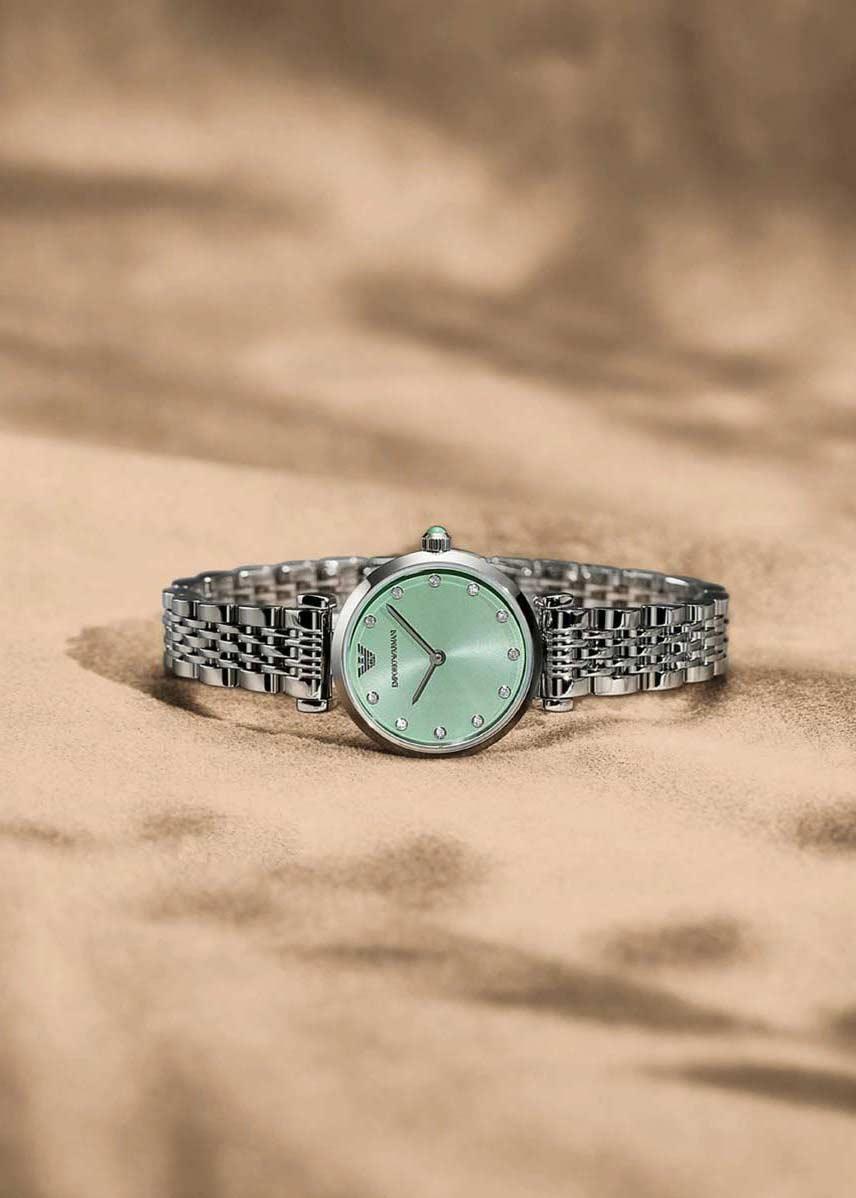 Эти женские часы — идеальный спутник для современной женщины, ценящей стиль и качество. Мерцающий циферблат Sunray, играющий переливами света при каждом движении, и россыпь кристаллов на метках создают неповторимый образ. Детали, говорящие о высоком классе: рифленая заводная головка с изящным кабошоном и надежная задняя крышка на винтах. Стальной браслет с застежкой-бабочкой обеспечивает идеальную посадку и комфорт на весь день.