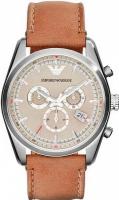 Мужские наручные часы Emporio Armani Sports AR6040. Точный кварцевый механизм с аналоговой индикацией. Корпус изготовлен из высококачественной нержавеющей стали 316L с высокими антикоррозийными свойствами. На стрелки и отметки нанесен светонакопительный состав, благодаря этому считывать информацию с циферблата возможно и в темноте. На циферблате отображается текущее число месяца. Функция хронографа. Ремешок изготовлен из кожи. Прочное, устойчивое к царапинам минеральное стекло защищает часы от повреждений. Часы являются водонепроницаемыми до 5 Бар. Ширина (с заводной головкой): 42мм. Толщина: 11мм. Гарантия: 2 года.