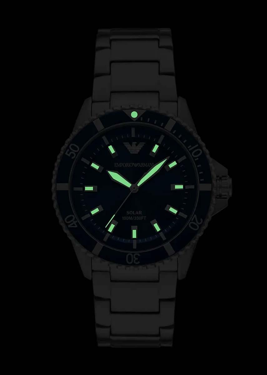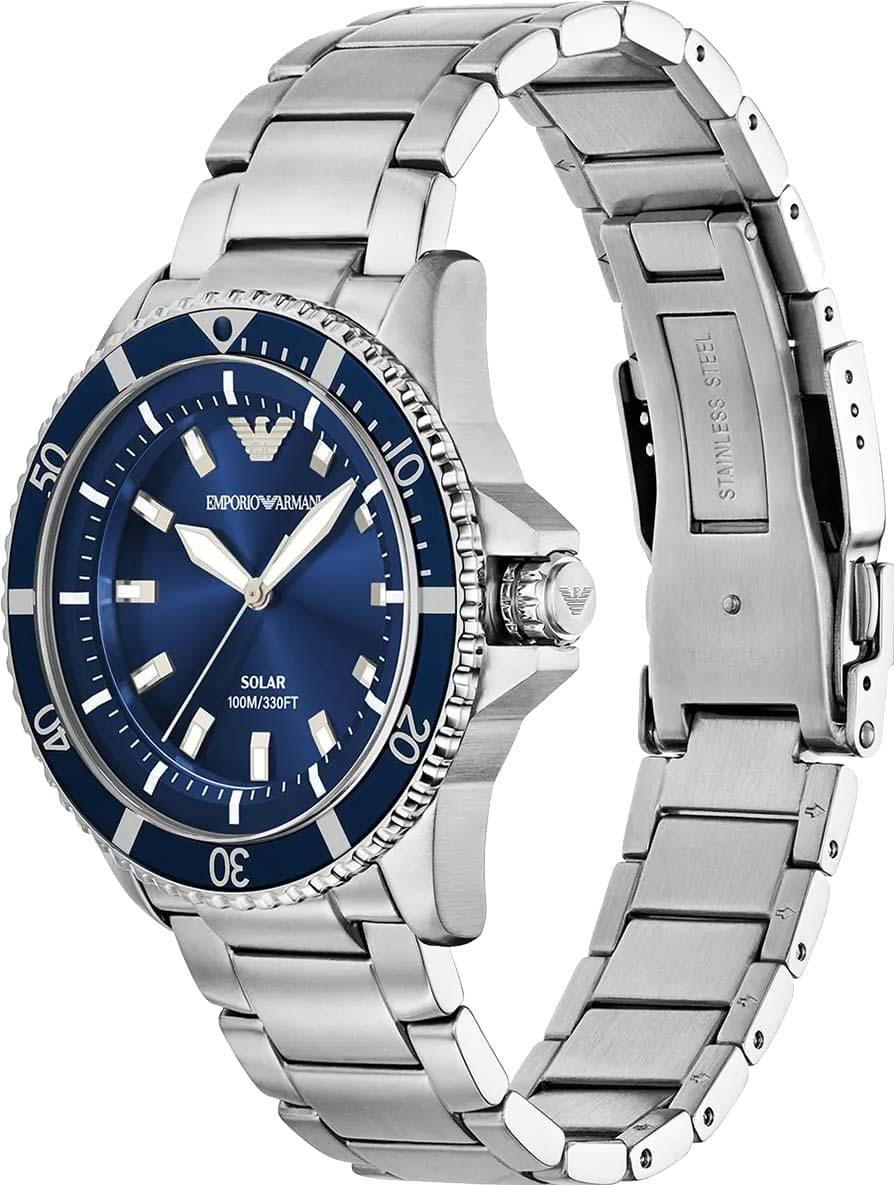 Мужские наручные часы World Explorer. Питание от солнечной энергии, время работы аккумулятора без подзарядки до 5 месяцев. Корпус изготовлен из высококачественной нержавеющей стали. Рифленый безель. Циферблат выполнен по технологии Sunray (солнечные лучи). Стрелки и метки в виде штрихов с люминесцентным покрытием, которое светится в темноте после непродолжительной зарядки на свету. Рифленая заводная головка с защитой. Браслет с раскладывающейся застежкой. Застежка с системой блокировки. Водозащита 100 метров (10 АТМ/bar): часы подходят для плавания и погружения на глубину 5-7 м (выдвигать заводную головку и нажимать кнопки, находясь в воде, нельзя).