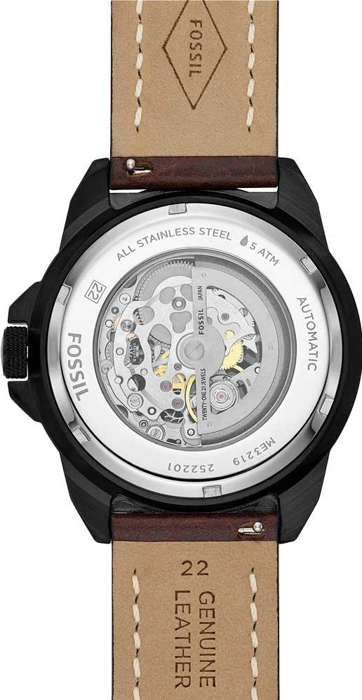 Мужские наручные часы Fossil Bronson ME3219. Механические с ручным подзаводом. Ремешок изготовлен из кожи. Браслет из нержавеющей стали. Прочное, устойчивое к царапинам минеральное стекло защищает часы от повреждений. Часы являются водонепроницаемыми до 5 Бар. Цвет циферблата: Черный. Цвет корпуса: Коричневый. На стрелки и отметки нанесен светонакопительный состав, благодаря этому считывать информацию с циферблата возможно и в темноте. Толщина: 12 мм. Гарантия: 2 года.