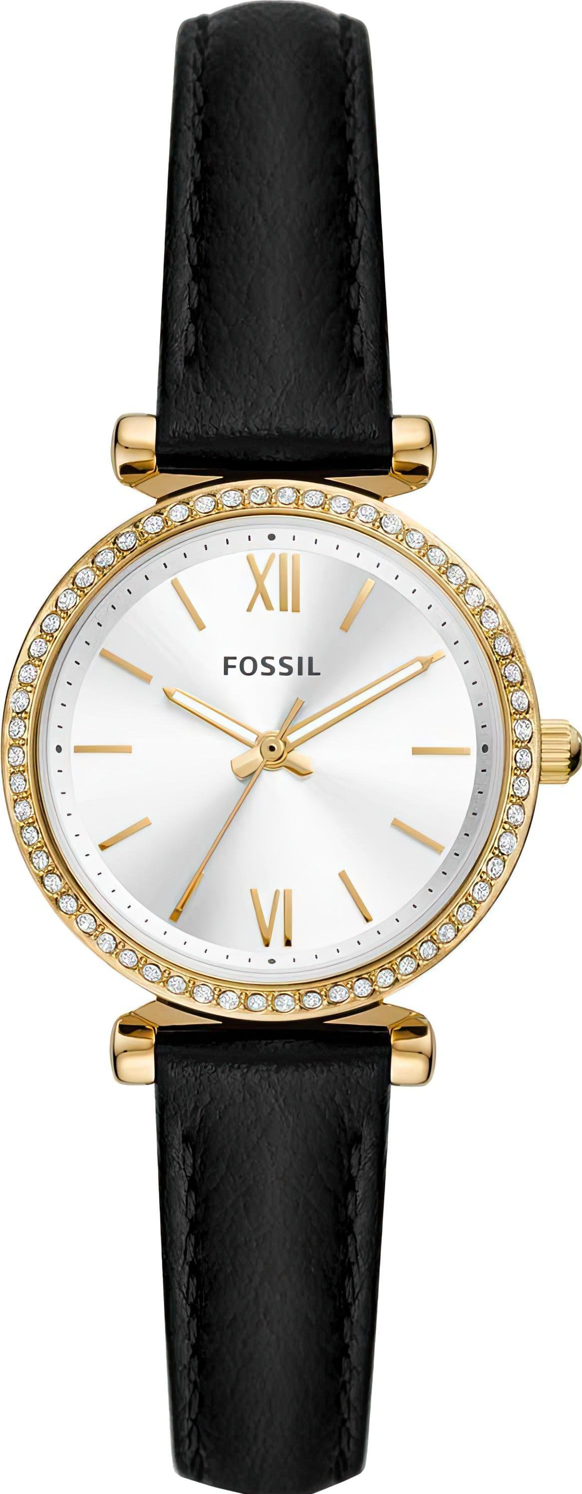 Женские наручные часы Fossil Carlie ES5127. Точный кварцевый механизм с аналоговой индикацией. Ремешок изготовлен из кожи. Браслет из нержавеющей стали. Прочное, устойчивое к царапинам минеральное стекло защищает часы от повреждений. Часы являются водонепроницаемыми до 3 Бар. Цвет циферблата: Желтое золото. Цвет корпуса: Серебристый. На стрелки и отметки нанесен светонакопительный состав, благодаря этому считывать информацию с циферблата возможно и в темноте. Толщина: 77 мм. Гарантия: 2 года.