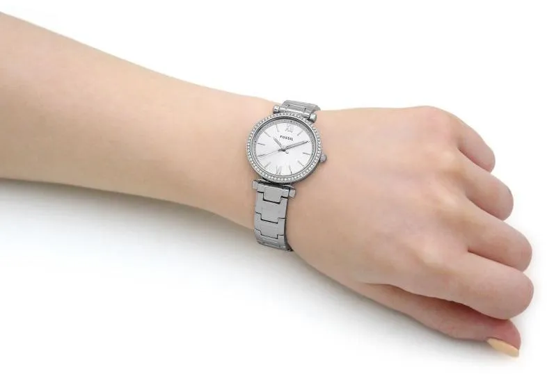 Женские наручные часы Fossil Carlie ES5250SET. Точный кварцевый механизм с аналоговой индикацией. Корпус изготовлен из высококачественной нержавеющей стали 316L с высокими антикоррозийными свойствами. На стрелки и отметки нанесен светонакопительный состав, благодаря этому считывать информацию с циферблата возможно и в темноте. Браслет из нержавеющей стали. Прочное, устойчивое к царапинам минеральное стекло защищает часы от повреждений. Часы являются водонепроницаемыми до 5 Бар. Цвет корпуса: Серебристый. Цвет циферблата: Серебристый. Ширина (с заводной головкой): 28мм. Толщина: 7мм. Гарантия: 2 года.