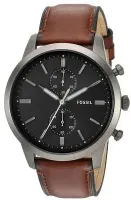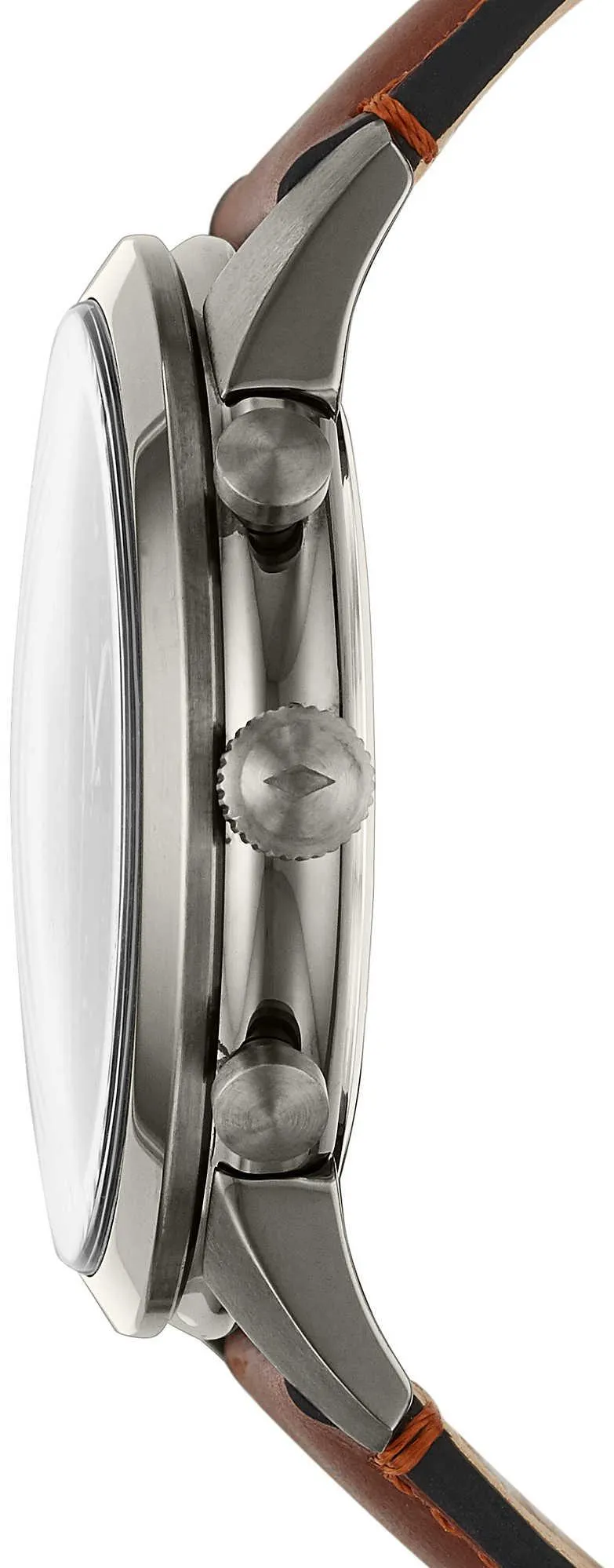 Мужские часы. • Корпус: сталь • Цвет корпуса: серый • Цвет циферблата: черный • Ремень/браслет: натуральная кожа • Цвет браслета: коричневый • Водозащита: 5АТМ