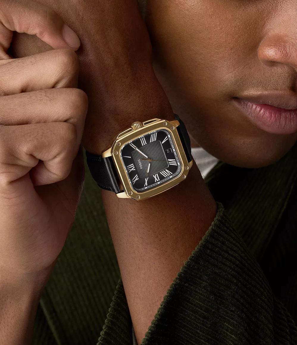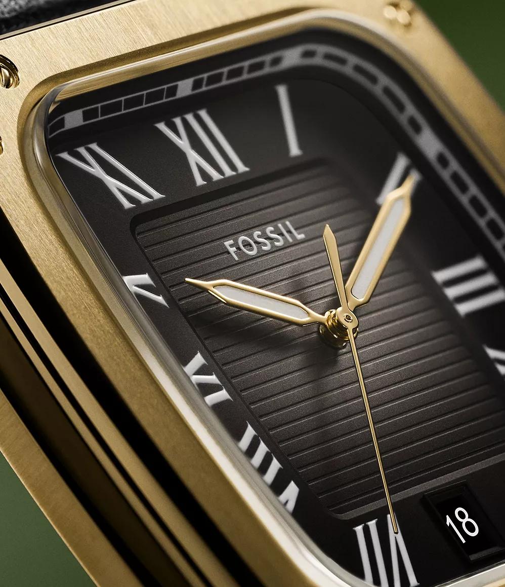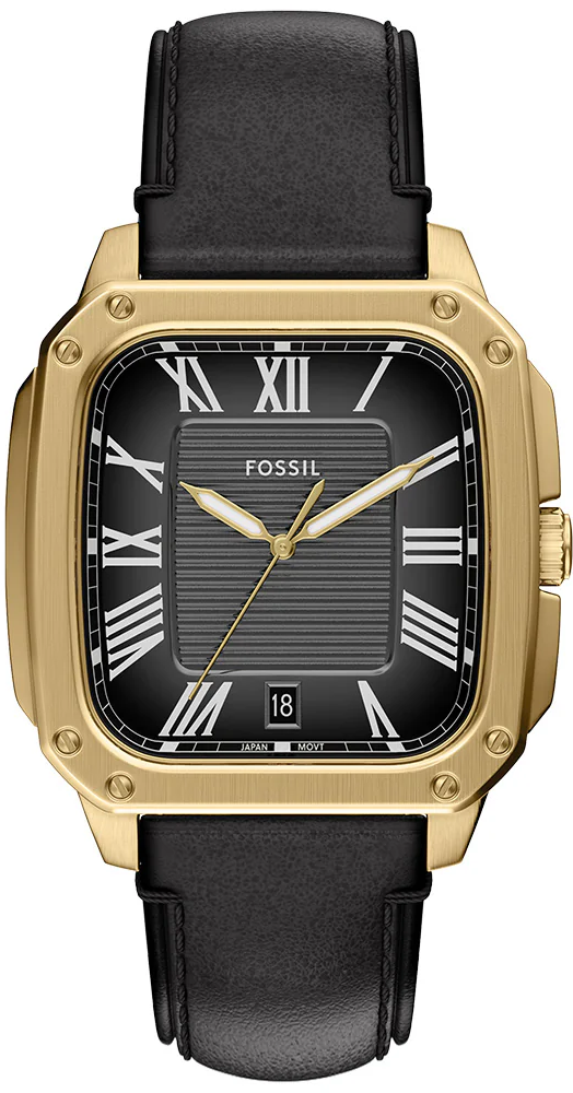 Мужские наручные часы Fossil Crosby FS6151. Точный кварцевый механизм с аналоговой индикацией. В отличие от механических часов, не требуют завода и работают от батареи, показывая отклонение всего несколько секунд в месяц. Ремешок изготовлен из кожи. Гибкость такого ремешка позволяет точно регулировать посадку часов на руке. Корпус изготовлен из высококачественной нержавеющей стали 316L с высокими антикоррозийными свойствами. Прочное, устойчивое к царапинам минеральное стекло защищает часы от повреждений. Часы являются водонепроницаемыми до 3 Бар. Цвет корпуса: Желтое золото. Цвет циферблата: Черный. Толщина: 10.3 мм. Гарантия: 2 года.