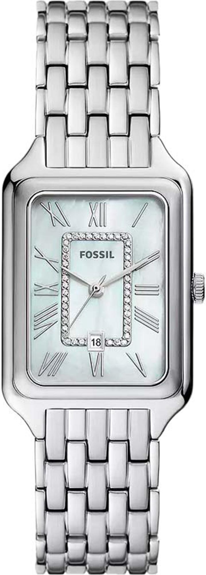 Женские наручные часы Fossil Raquel ES5306. Точный кварцевый механизм с аналоговой индикацией. Корпус изготовлен из высококачественной нержавеющей стали 316L с высокими антикоррозийными свойствами. На циферблате отображается текущее число месяца. Браслет из нержавеющей стали. Прочное, устойчивое к царапинам минеральное стекло защищает часы от повреждений. Часы являются водонепроницаемыми до 5 Бар. Цвет корпуса: Серебристый. Цвет циферблата: Перламутровый. Ширина (с заводной головкой): 26мм. Толщина: 14мм. Гарантия: 2 года.