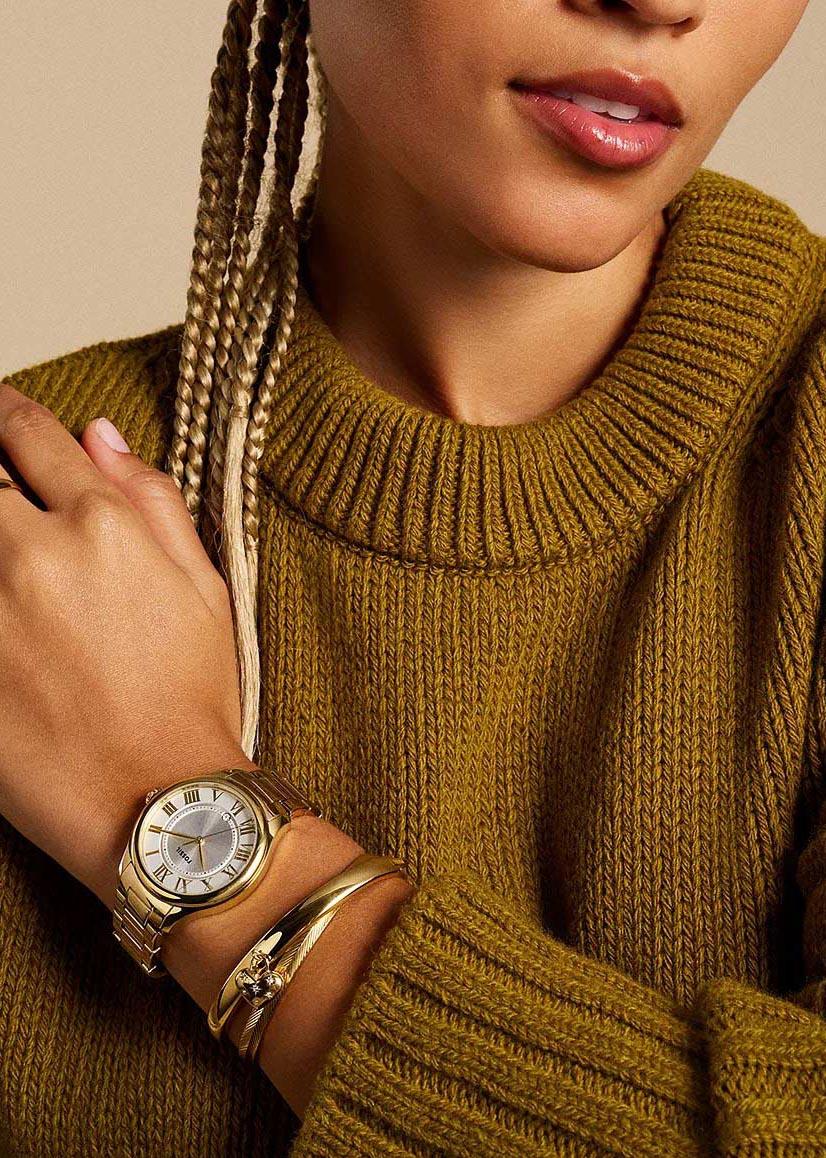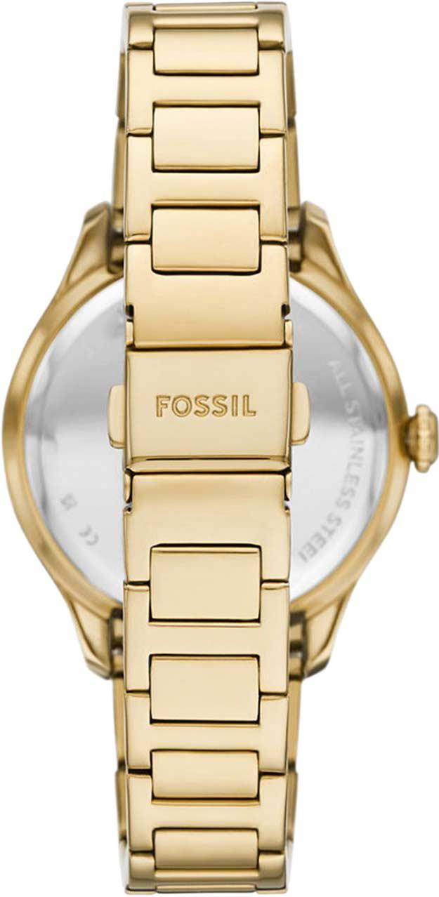 Женские наручные часы Fossil Gilmore ES5395. Точный кварцевый механизм с аналоговой индикацией. В отличие от механических часов, не требуют завода и работают от батареи, показывая отклонение всего несколько секунд в месяц. Браслет из нержавеющей стали обладает высокой прочностью и износостойкостью, обеспечивая долговечность даже при активной эксплуатации. Материал устойчив к коррозии и сохраняет свой внешний вид надолго. Корпус изготовлен из высококачественной нержавеющей стали 316L с высокими антикоррозийными свойствами. Прочное, устойчивое к царапинам минеральное стекло защищает часы от повреждений. Часы являются водонепроницаемыми до 5 Бар. Цвет корпуса: Желтое золото. Цвет циферблата: Белый. Цвет циферблата: Серебристый. Гарантия: 2 года.