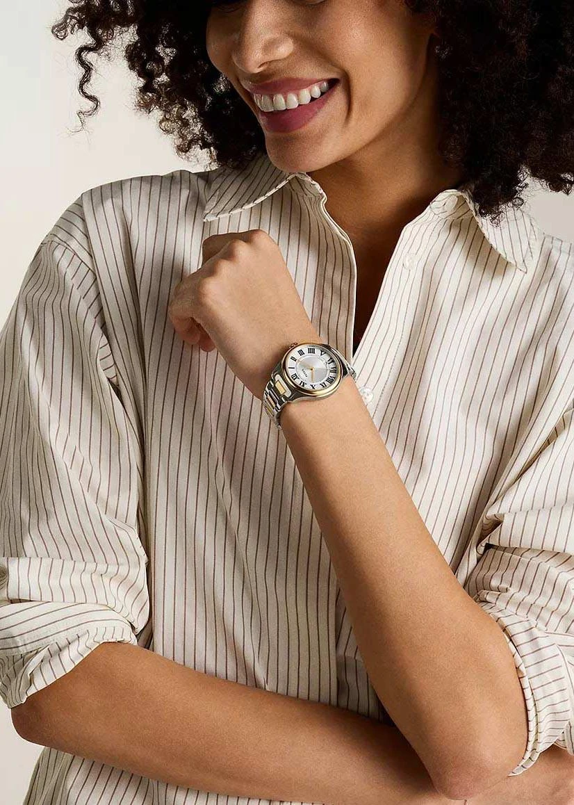 Женские наручные часы Fossil Gilmore ES5396. Точный кварцевый механизм с аналоговой индикацией. В отличие от механических часов, не требуют завода и работают от батареи, показывая отклонение всего несколько секунд в месяц. Браслет из нержавеющей стали обладает высокой прочностью и износостойкостью, обеспечивая долговечность даже при активной эксплуатации. Материал устойчив к коррозии и сохраняет свой внешний вид надолго. Корпус изготовлен из высококачественной нержавеющей стали 316L с высокими антикоррозийными свойствами. Прочное, устойчивое к царапинам минеральное стекло защищает часы от повреждений. Часы являются водонепроницаемыми до 5 Бар. Цвет корпуса: Серебристый. Цвет корпуса: Желтое золото. Цвет циферблата: Белый. Цвет циферблата: Серебристый. Гарантия: 2 года.