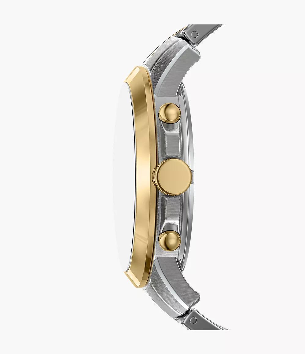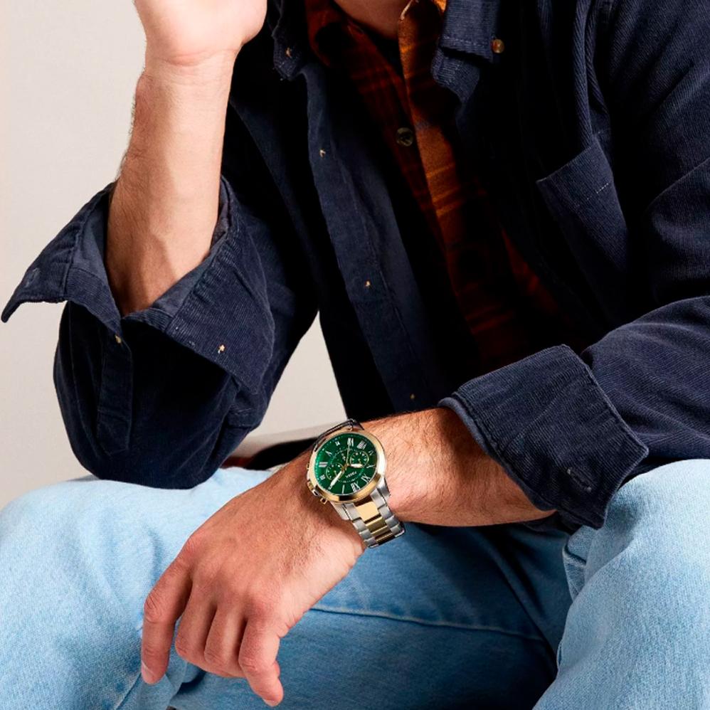 Fossil Grant Chronograph FS6131 — это мужские часы классической формы с характерным зеленым циферблатом, заключенным в корпус из нержавеющей стали серебристо-золотистого цвета. Завершает образ браслет в тон, а циферблат защищен минеральным стеклом. Модель оснащена функцией хронографа и кварцевым механизмом. Водонепроницаемость до 50 метров (5 АТМ/bar): выдерживают мытье рук, попадание крупных капель.