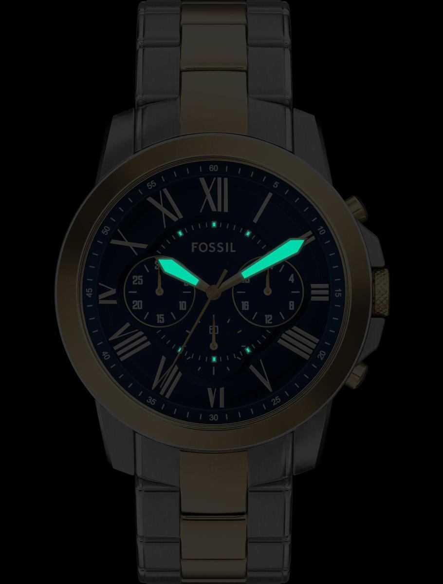 Fossil Grant Chronograph FS6132 — это мужские часы классической формы с характерным синим циферблатом, заключенным в корпус из нержавеющей стали серебристо-золотистого цвета. Завершает образ браслет в тон, а циферблат защищен минеральным стеклом. Модель оснащена функцией хронографа и кварцевым механизмом. Водонепроницаемость до 50 метров (5 АТМ/bar): выдерживают мытье рук, попадание крупных капель.