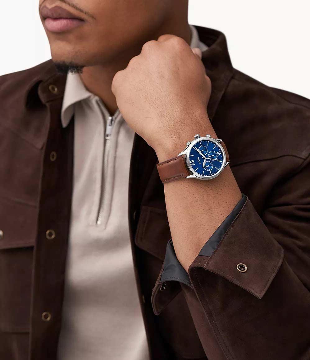 Циферблат, выполненный по технологии Sunray, играет на свету переливами, напоминающими солнечные лучи, что придает часам особую глубину и стиль. Эстетику классического инструмента дополняют комбинированные метки в виде штрихов и римских цифр, массивная рифленая заводная головка и надежная завинчивающаяся задняя крышка, усиливающая водозащитные свойства модели. Мягкий кожаный ремешок с классической застежкой завершает образ, обеспечивая комфорт и солидный внешний вид. Это выбор для тех, кто ценит в часах не только точность, но и характер.