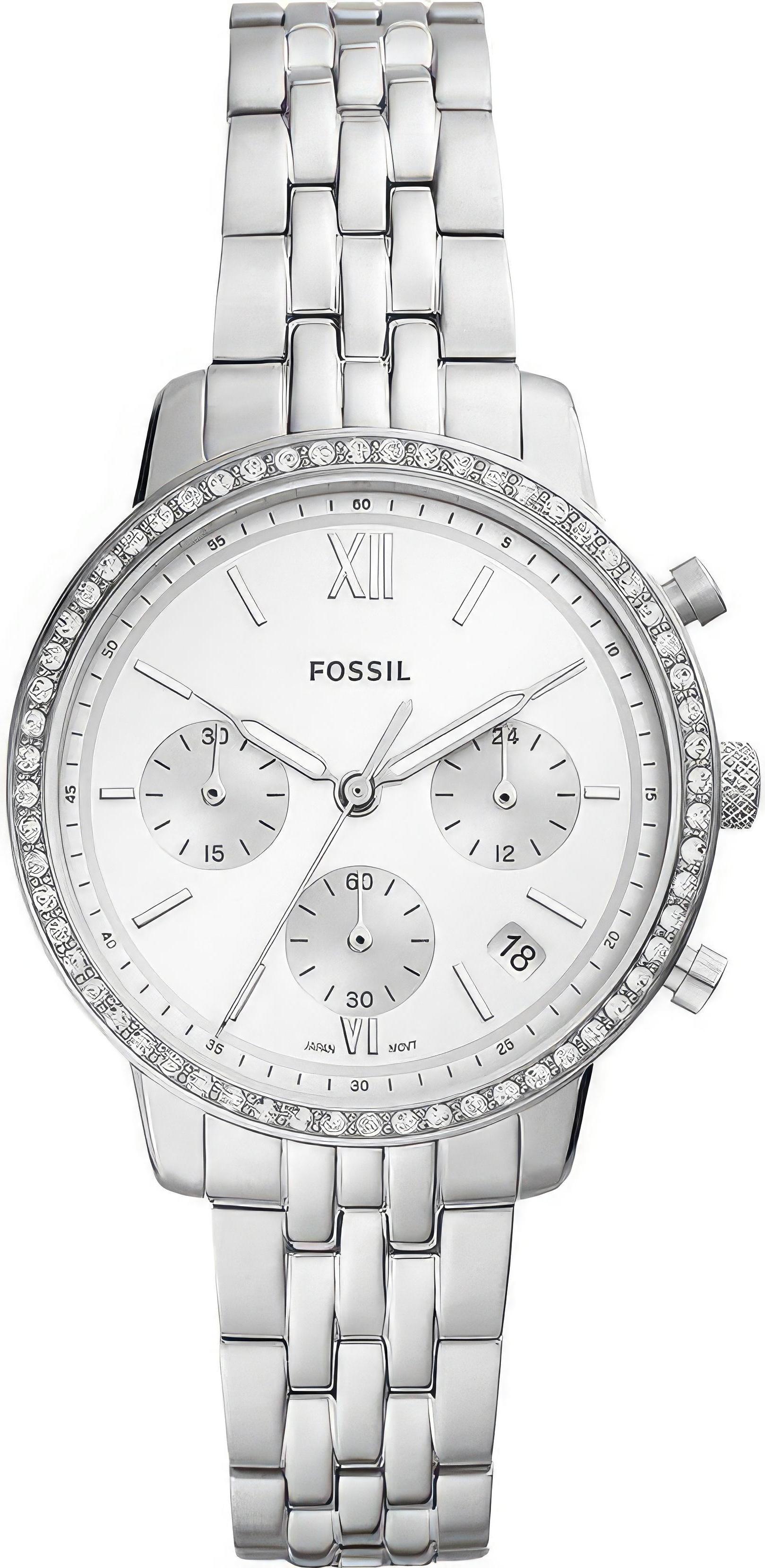 Женские наручные часы Fossil Neutra ES5217. Точный кварцевый механизм с аналоговой индикацией. Корпус изготовлен из высококачественной нержавеющей стали 316L с высокими антикоррозийными свойствами. На стрелки и отметки нанесен светонакопительный состав, благодаря этому считывать информацию с циферблата возможно и в темноте. На циферблате отображается текущее число месяца. Функция хронографа. Отображение времени возможно в 12-часовом или 24-часовом формате. Браслет из нержавеющей стали. Прочное, устойчивое к царапинам минеральное стекло защищает часы от повреждений. Часы являются водонепроницаемыми до 5 Бар. Цвет корпуса: Серебристый. Цвет циферблата: Серебристый. Ширина (с заводной головкой): 36мм. Толщина: 12мм. Гарантия: 2 года.