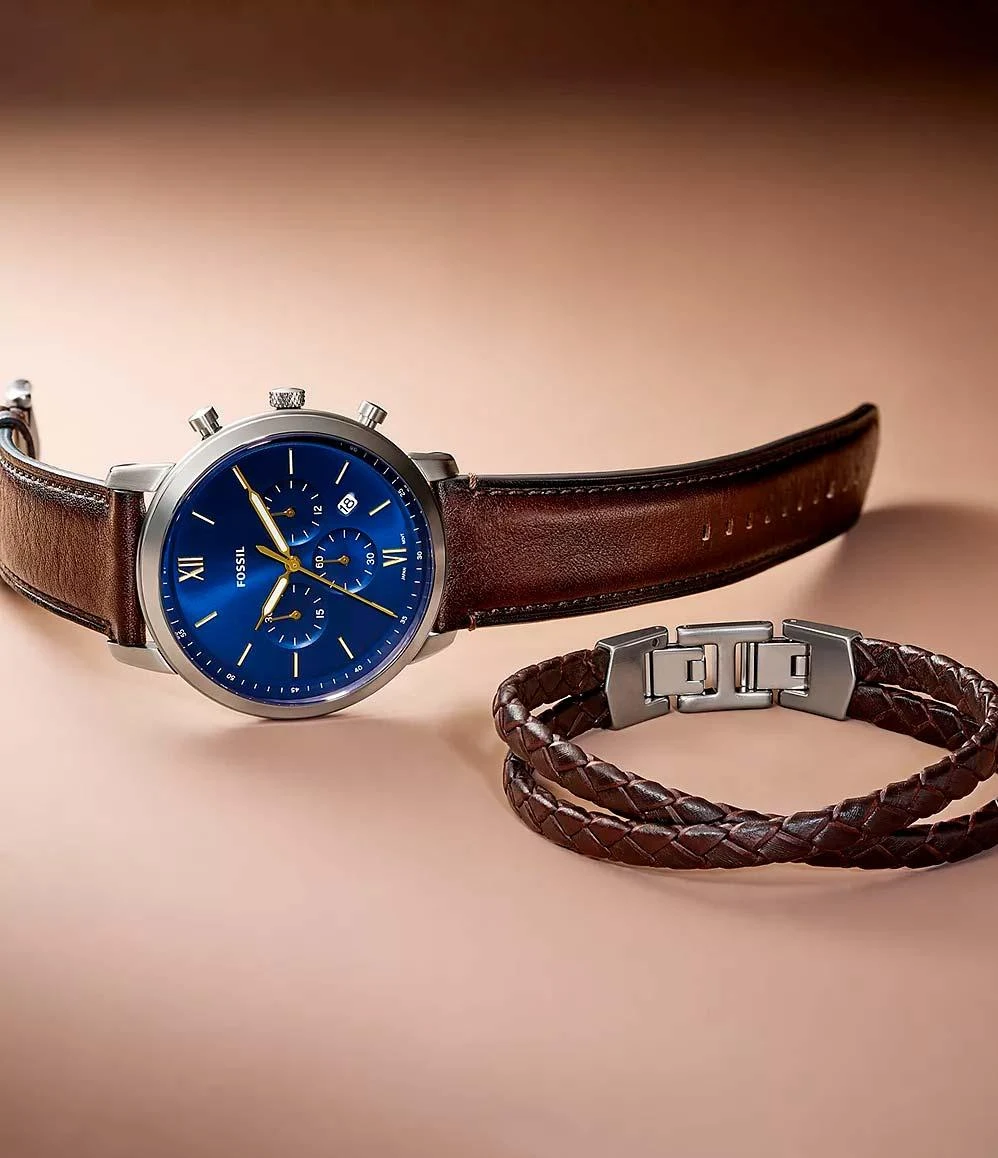 Элегантный дизайн этих функциональных часов делает их эффектным аксессуаром, который будет превосходно дополнять ваш образ, подчеркивая чувство стиля и внимание к деталям. Модель Neutra Chronograph оснащена точным секундомером и поддерживает как 12-ти, так и 24-часовой формат времени, что подчеркивает её универсальность. Классическую эстетику подчеркивают комбинированные метки в виде штрихов и римских цифр, а также удобное окошко даты между отметками 4 и 5 часов. Дополнительный шарм часам придает рифленая заводная головка. В комплекте вы найдете два ремешка: классический кожаный с традиционной застежкой для сдержанного образа и стильный кожаный плетеный браслет, который добавит вашему луку яркой индивидуальности.