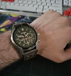 • Японский кварцевый механизм MIYOTA, калибр JS25, с аналоговой индикацией. • Точность хода с погрешностью не более -/ +20 сек. в месяц. • Батарея SR621SW со сроком службы 3 года. • Центральные часовая, минутная и секундная стрелки. • Стрелочный указатель времени суток с 24-х часовой шкалой в положении «6 часов». • Индикатор даты в положении. • Хронограф с маленькой секундной стрелкой в положении «6 часов» и 30-минутным индикатором.