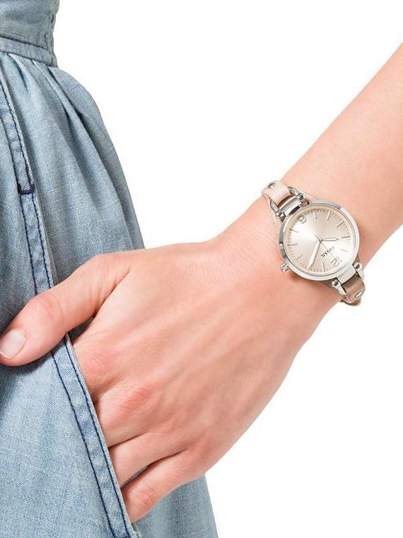 Женские наручные часы Fossil Trend ES2830. Точный кварцевый механизм с аналоговой индикацией. Корпус изготовлен из высококачественной нержавеющей стали 316L с высокими антикоррозийными свойствами. На стрелки и отметки нанесен светонакопительный состав, благодаря этому считывать информацию с циферблата возможно и в темноте. Ремешок изготовлен из кожи. Прочное, устойчивое к царапинам минеральное стекло защищает часы от повреждений. Часы являются водонепроницаемыми до 5 Бар. Цвет корпуса: Серебристый. Цвет циферблата: Бежевый. Ширина (с заводной головкой): 32мм. Толщина: 9мм. Гарантия: 2 года.