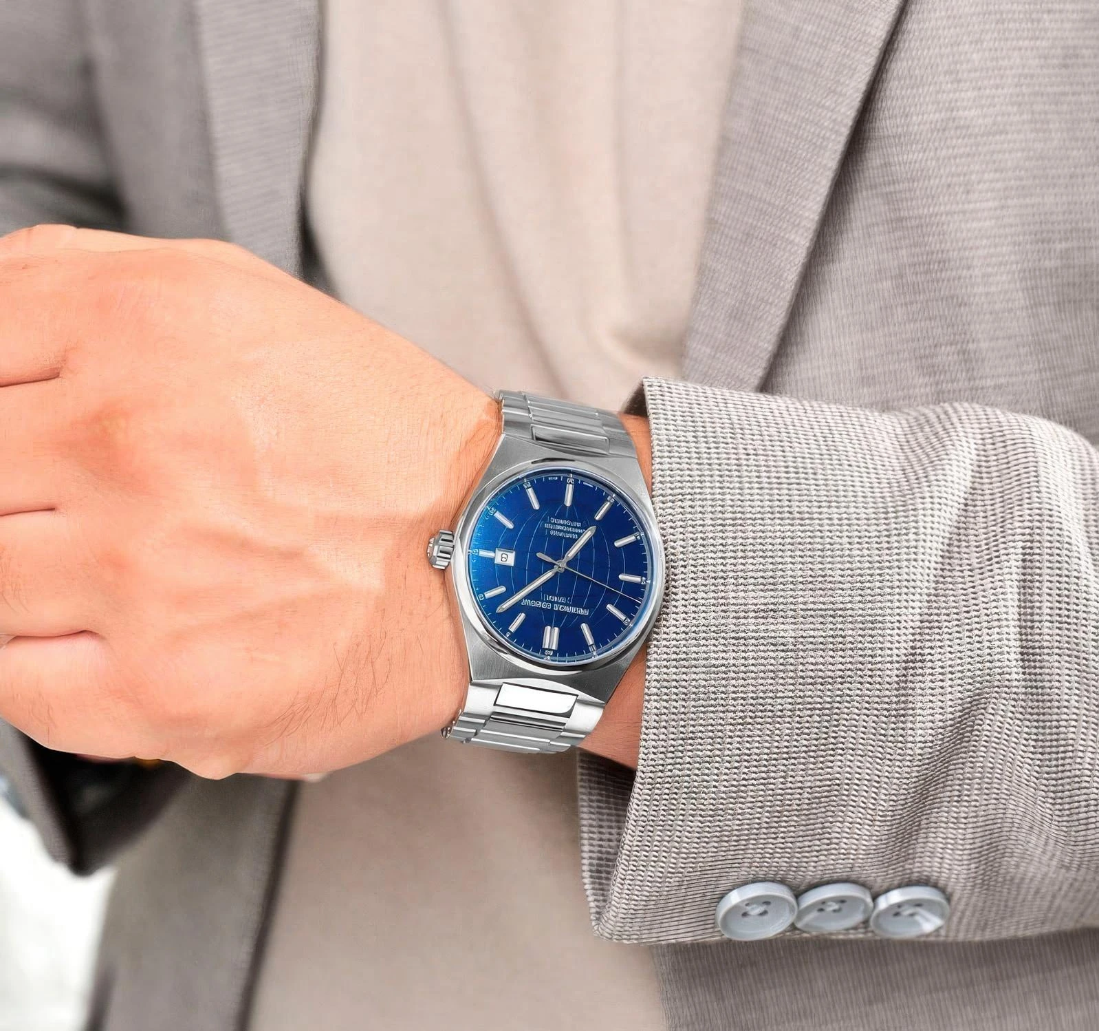 . Механические с автоподзаводом. Пружина механизма заводится автоматически благодаря естественным движениям владельца в процессе ежедневной носки часов. Браслет из нержавеющей стали. После настройки автоматический календарь всегда отображает точную дату. Браслет из нержавеющей стали. Сапфировое стекло. Искусственно изготовленное стекло с высокой прочностью и устойчивостью к царапинам. На циферблате отображается текущее число месяца. Часы являются водонепроницаемыми до 10 Бар. Цвет циферблата: Серебристый. Цвет корпуса: Синий. На стрелки и отметки нанесен светонакопительный состав, благодаря этому считывать информацию с циферблата возможно и в темноте. Толщина: 11 мм. Гарантия: 2 года.