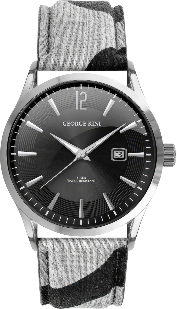 Мужские наручные часы GEORGE KINI GK.11.B.2S.4.1.0. Японский кварцевый механизм MIYOTA, калибр Basic 2115-3H. Корпус выполнен из нержавеющей стали 316L. Центральные часовая, минутная и секундная стрелки. Индикация даты в апертуре на отметке «3 часа». Ремешок тканевый на кожаной подложке, стандартная застежка с шипом. Дополнительный тканевый ремешок в стиле NATO Strap в комплекте и инструмент для его замены.
