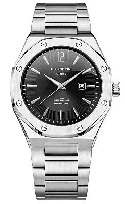 Мужские наручные часы George Kini Citylife men GK.CTM001. Точный кварцевый механизм с аналоговой индикацией. Браслет из нержавеющей стали. Браслет из нержавеющей стали. Сапфировое стекло. Искусственно изготовленное стекло с высокой прочностью и устойчивостью к царапинам. На циферблате отображается текущее число месяца. Часы являются водонепроницаемыми до 5 Бар. Цвет циферблата: Серебристый. Цвет корпуса: Черный. На стрелки и отметки нанесен светонакопительный состав, благодаря этому считывать информацию с циферблата возможно и в темноте. Толщина: 12 мм. Гарантия: 2 года.
