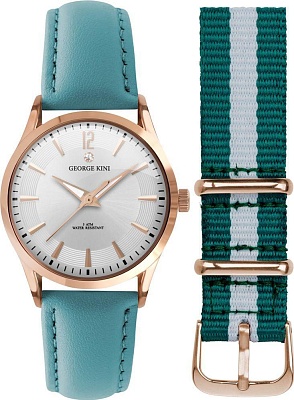 Женские наручные часы George Kini Classic GK.23.3.1R.17. Точный кварцевый механизм с аналоговой индикацией. Ремешок изготовлен из кожи. Браслет из нержавеющей стали. Сапфировое стекло. Искусственно изготовленное стекло с высокой прочностью и устойчивостью к царапинам. Часы являются водонепроницаемыми до 5 Бар. Цвет циферблата: Розовое золото. Цвет корпуса: Белый. На стрелки и отметки нанесен светонакопительный состав, благодаря этому считывать информацию с циферблата возможно и в темноте. Толщина: 7 мм. Гарантия: 2 года.