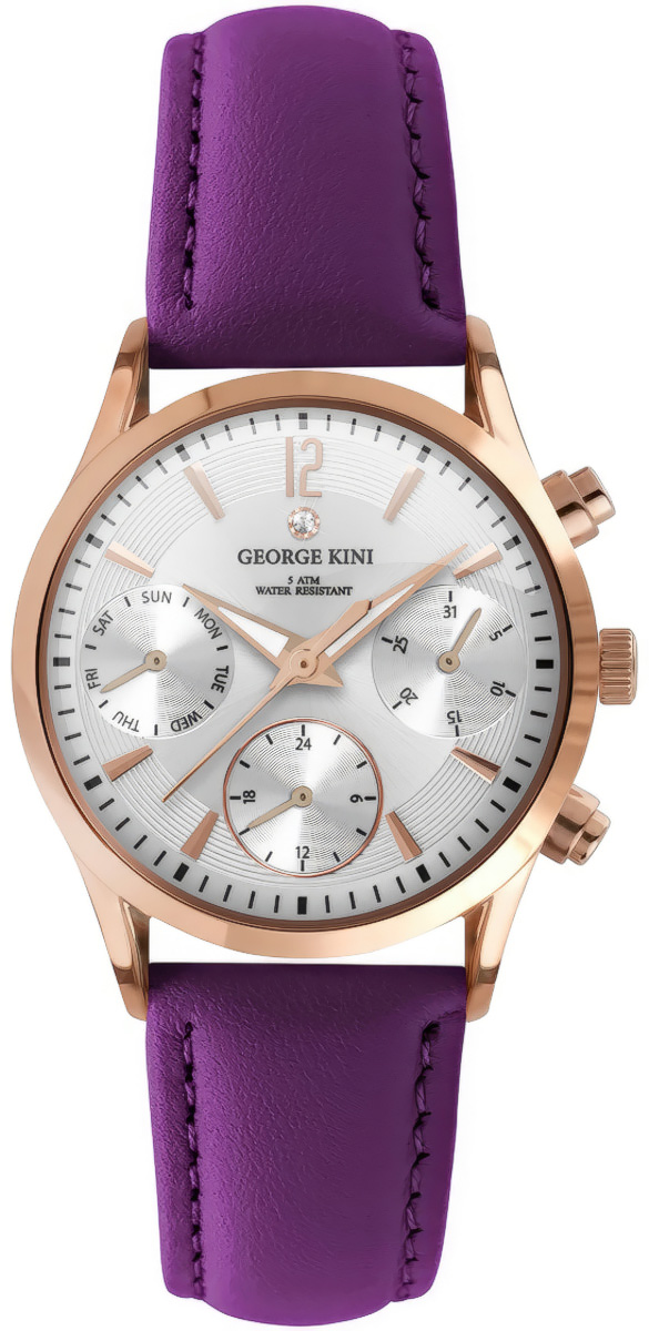 Мультифункциональные женские часы станут прекрасным дополнением к вашему стильному образу. Наручные кварцевые часы в круглом корпусе. Циферблат выполнен по технологии Sunray (солнечные лучи), украшен рельефным декоративным узором в зоне меток и бриллиантом в положении 12 часов. Метки в виде штрихов, 12-ти часовая метка в виде арабской цифры. 12-ти и 24-х часовой формат времени, дата и день недели отображаются на отдельных циферблатах. Стрелки в стиле Dauphine с люминесцентным покрытием, которое светится в темноте после непродолжительной зарядки на свету. Рифленая заводная головка. Удобный ремешок из натуральной кожи с классической застежкой.