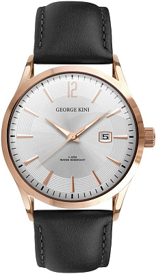 Мужские наручные часы George Kini Create GK.11.3.1R.16. Точный кварцевый механизм с аналоговой индикацией. Корпус изготовлен из высококачественной нержавеющей стали 316L с высокими антикоррозийными свойствами. На стрелки и отметки нанесен светонакопительный состав, благодаря этому считывать информацию с циферблата возможно и в темноте. На циферблате отображается текущее число месяца. Ремешок изготовлен из кожи. Сапфировое стекло. Искусственно изготовленное стекло с высокой прочностью и устойчивостью к царапинам. Часы являются водонепроницаемыми до 5 Бар. Цвет корпуса: Розовое золото. Цвет циферблата: Белый. Ширина (с заводной головкой): 41мм. Толщина: 7мм. Гарантия: 2 года.