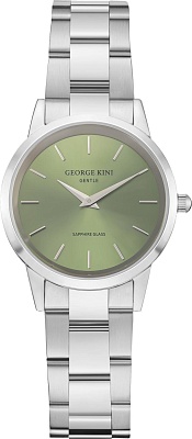 Женские наручные часы George Kini Gentle GK.GN0001. Точный кварцевый механизм с аналоговой индикацией. Браслет из нержавеющей стали. Браслет из нержавеющей стали. Сапфировое стекло. Искусственно изготовленное стекло с высокой прочностью и устойчивостью к царапинам. Часы являются водонепроницаемыми до 5 Бар. Цвет циферблата: Серебристый. Цвет корпуса: Зеленый. Толщина: 8 мм. Гарантия: 2 года.
