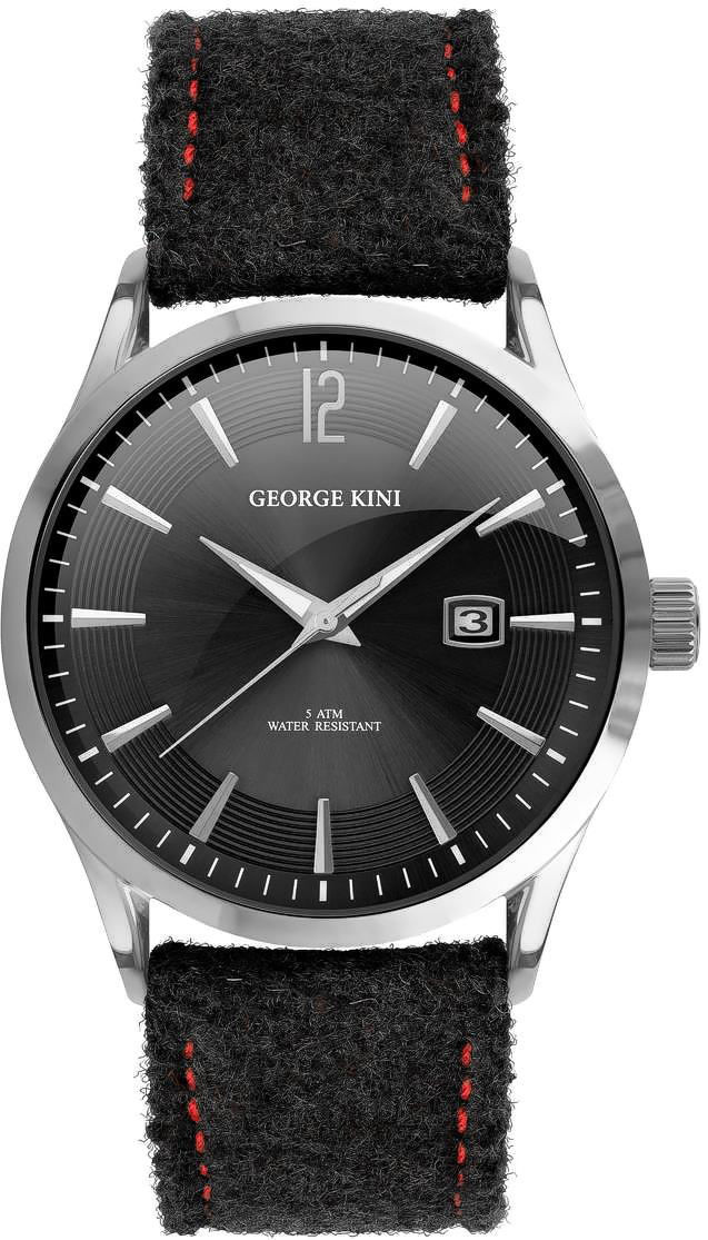 Мужские часы George Kini Heat up! GK.11.S.2S.3.2.0. Точный кварцевый механизм с аналоговой индикацией. Корпус изготовлен из высококачественной нержавеющей стали 316L с высокими антикоррозийными свойствами. На циферблате отображается текущее число месяца. Текстильный ремешок. Минерально стекло с сапфировым антибликовым покрытием. Такое покрытие предотвращает появление царапин и повышает прочность стекла в несколько раз. Часы являются водонепроницаемыми до 5 Бар. Цвет корпуса: Серебристый. Цвет циферблата: Черный. Ширина (с заводной головкой): 41мм. Толщина: 9мм. В комплекте сменный ремешок. Гарантия: 2 года.