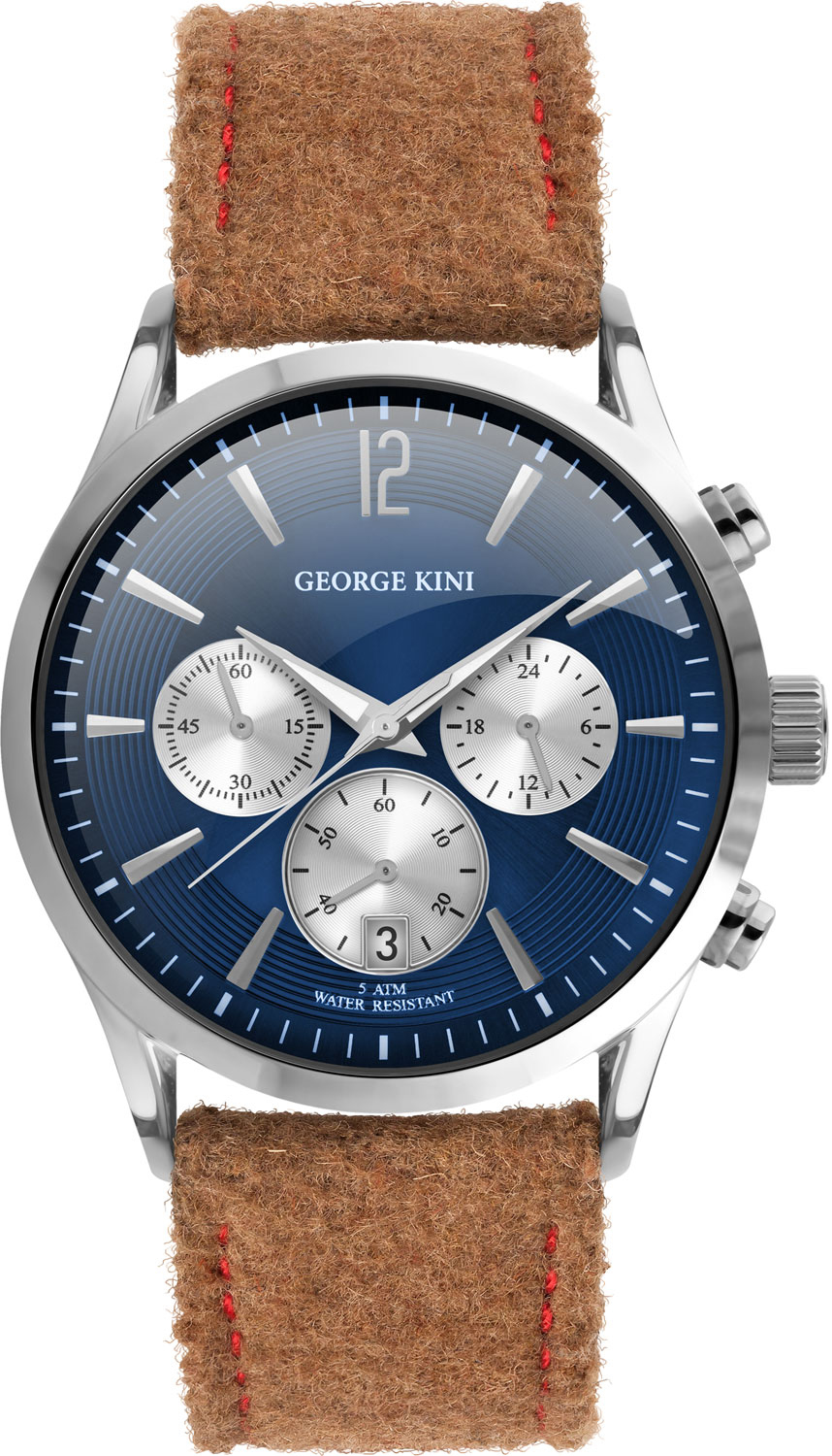 Данная модель часов - стильная, эффектная и привлекает внимание окружающих. Мужские часы-хронограф с секундомером в стальном нержавеющем корпусе. Циферблат выполнен по технологии Sunray (солнечные лучи), в зоне меток - рельефный декоративный узор. Метки в виде штрихов, 12-ти часовая метка в виде арабской цифры. Стрелки в стиле Dauphine с люминесцентным покрытием, которое светится в темноте после непродолжительной зарядки на свету. Окошко даты находится в положении 6 часов. 12-ти и 24-х часовой формат времени. Рифленая заводная головка. Удобный шерстяной ремешок с кожаной подложкой и классической застежкой.