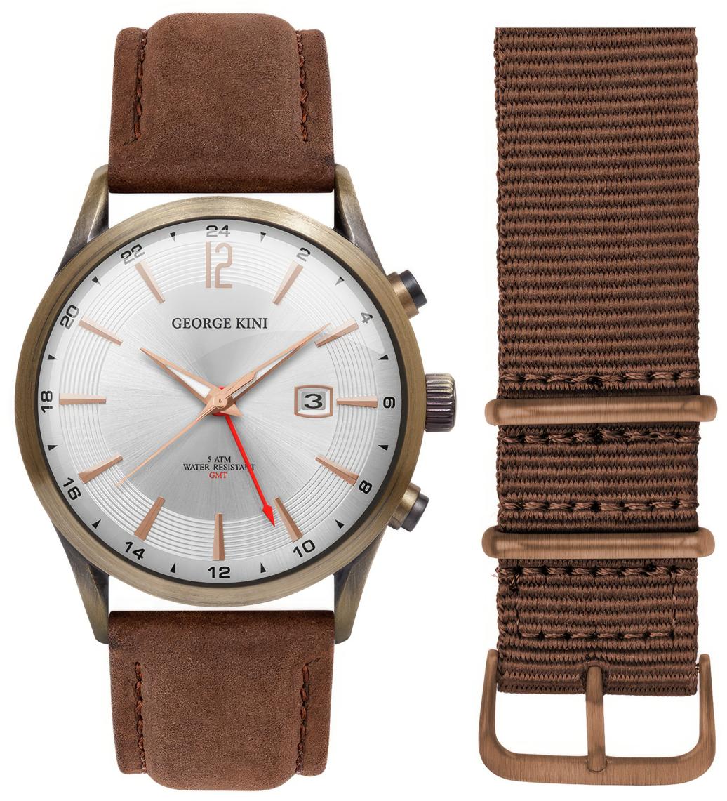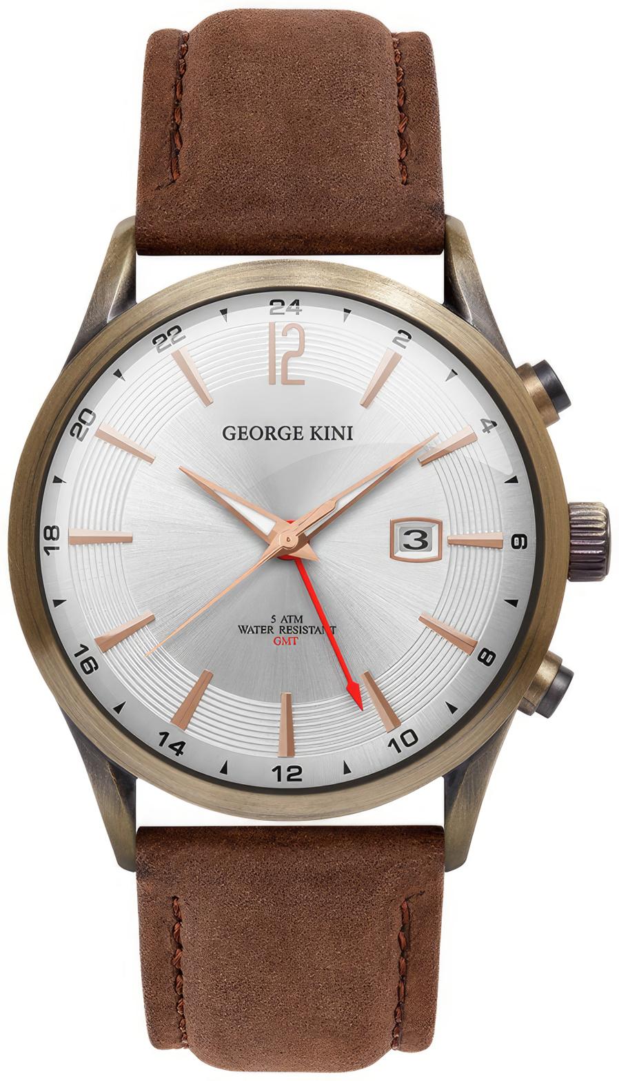 <b>Мужские наручные часы George Kini Traveller GK.18.BR1.BR.2.BR.0</b>. Точный кварцевый механизм с аналоговой индикацией. Корпус изготовлен из высококачественной нержавеющей стали 316L с высокими антикоррозийными свойствами. На стрелки и отметки нанесен светонакопительный состав, благодаря этому считывать информацию с циферблата возможно и в темноте. На циферблате отображается текущее число месяца. Отображение времени возможно в 12-часовом или 24-часовом формате. Ремешок изготовлен из кожи. Сапфировое стекло. Искусственно изготовленное стекло с высокой прочностью и устойчивостью к царапинам. Часы являются водонепроницаемыми до 5 Бар. Цвет корпуса: Коричневый. Цвет циферблата: Белый. Ширина (с заводной головкой): 41мм. Толщина: 7мм. Гарантия: 2 года.