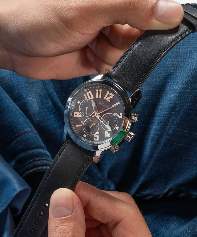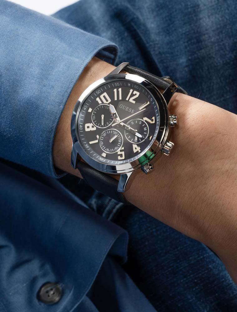 Мужские наручные часы Guess Dress GW0709G1. Точный кварцевый механизм с аналоговой индикацией. В отличие от механических часов, не требуют завода и работают от батареи, показывая отклонение всего несколько секунд в месяц. Ремешок изготовлен из кожи. Гибкость такого ремешка позволяет точно регулировать посадку часов на руке. Отображение времени возможно в 12-часовом или 24-часовом формате. Корпус изготовлен из высококачественной нержавеющей стали 316L с высокими антикоррозийными свойствами. Прочное, устойчивое к царапинам минеральное стекло защищает часы от повреждений. Часы являются водонепроницаемыми до 5 Бар. Цвет корпуса: Серебристый. Цвет циферблата: Черный. Высота (с ушками): 44 мм. Толщина: 13 мм. Гарантия: 2 года.
