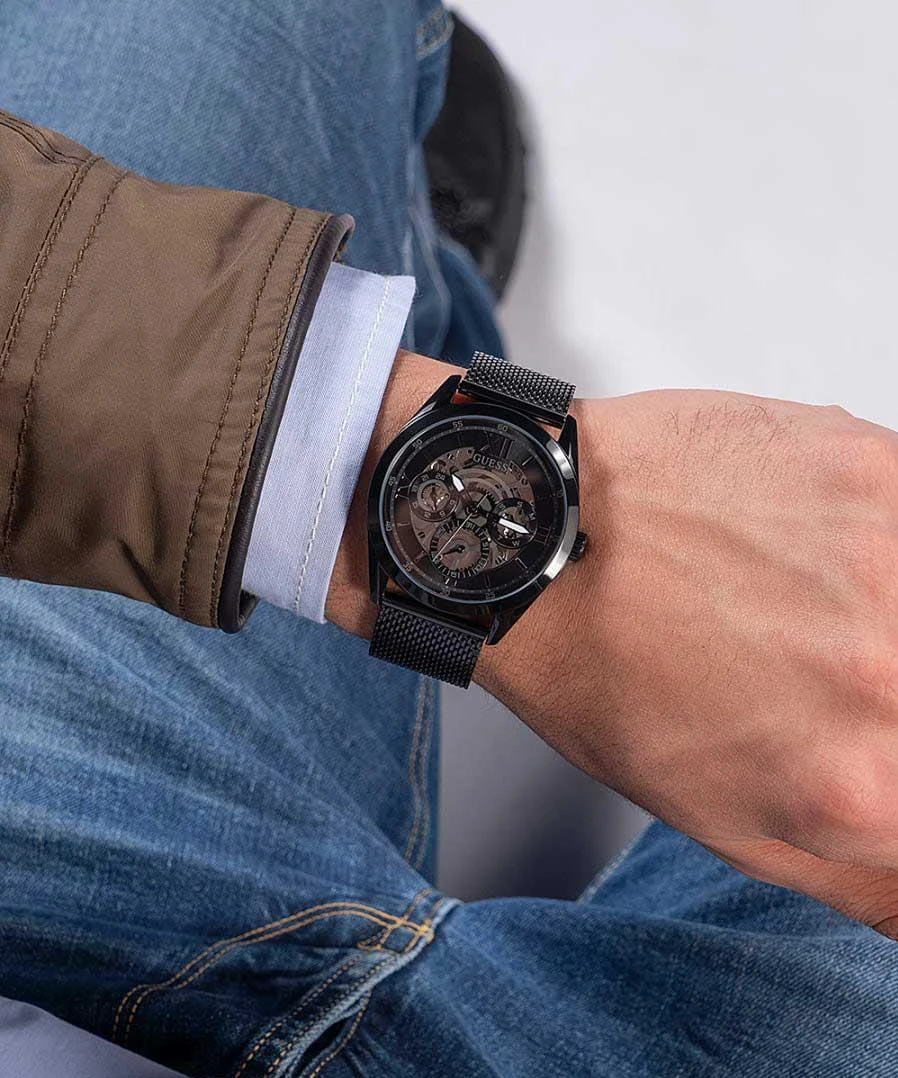 Стильные универсальные часы Tailor созданы для сочетания с любым костюмом. Модель с круглым корпусом представляет собой скелетон с циферблатом, выполненным по технологии Sunray. Композицию дополняют метки в виде штрихов и римских цифр. Функциональность часов включает 12-ти и 24-часовой формат времени, при этом число и день недели вынесены на отдельные малые циферблаты. Комплектация завершается классическим браслетом миланского плетения.