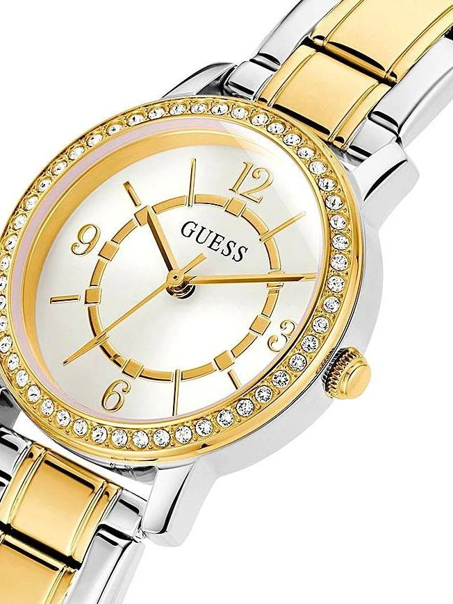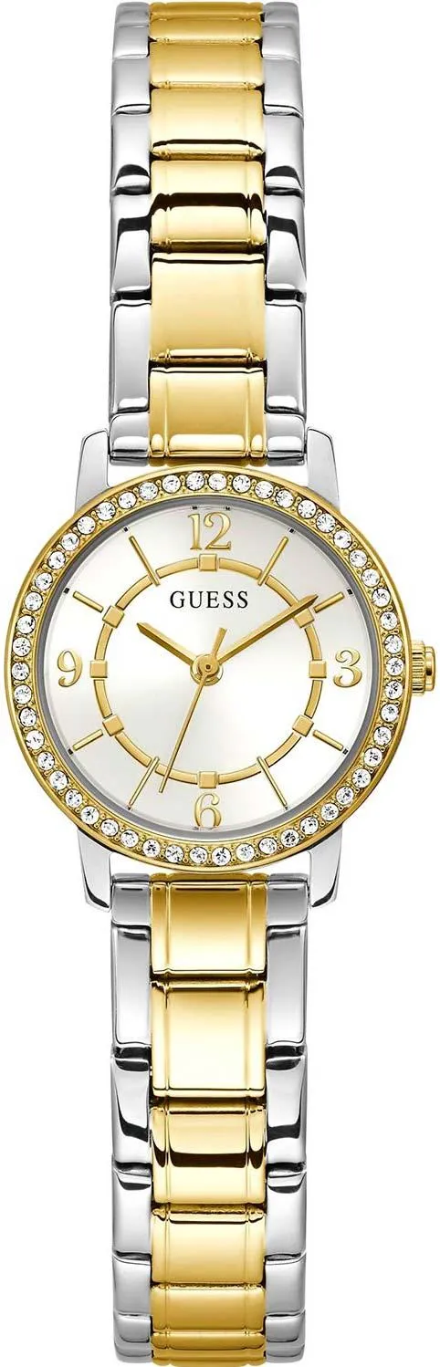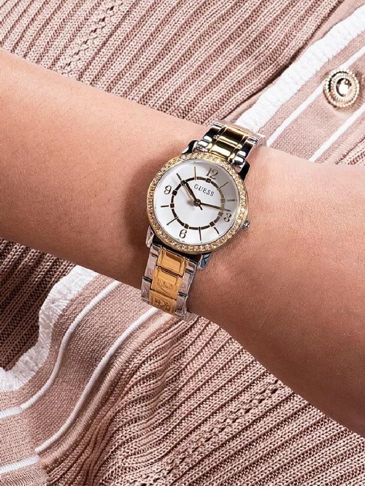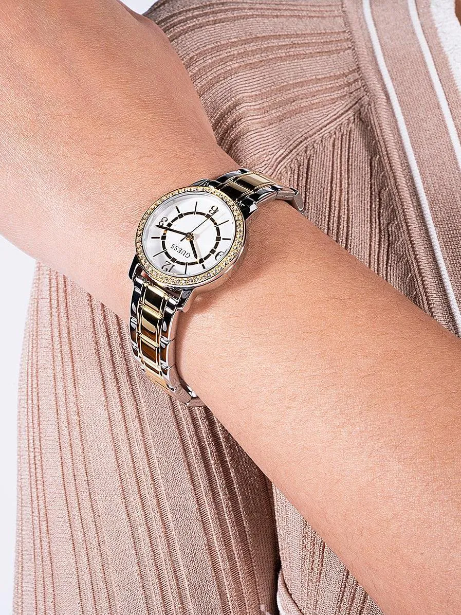 Женские наручные часы Guess Melody GW0468L4. Точный кварцевый механизм с аналоговой индикацией. Корпус изготовлен из высококачественной нержавеющей стали 316L с высокими антикоррозийными свойствами. Браслет из нержавеющей стали. Прочное, устойчивое к царапинам минеральное стекло защищает часы от повреждений. Часы являются водонепроницаемыми до 3 Бар. Цвет корпуса: Желтое золото. Цвет циферблата: Серебристый. Ширина (с заводной головкой): 28мм. Толщина: 8мм. Гарантия: 2 года.
