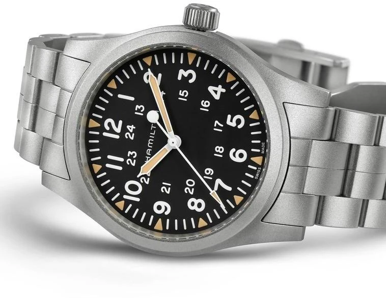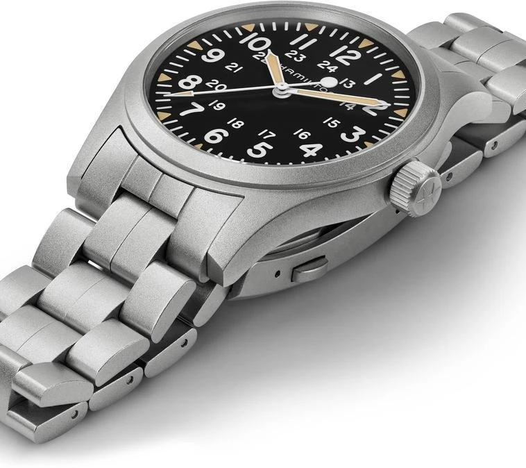 Hamilton Мужские швейцарские часы Khaki Field H69439131. Механические с ручным подзаводом. Завод осуществляется через систему шестерней, передающих вращение с головки на заводной барабан. Механизм включает предохранительную систему, предотвращающую перезавод главной пружины.Светодиодная подсветка обеспечивает равномерное и энергоэффективное освещение циферблата. Для активации обычно требуется нажатие отдельной кнопки, что позволяет экономить заряд батареи.Браслет из нержавеющей стали обладает высокой прочностью и износостойкостью, обеспечивая долговечность даже при активной эксплуатации. Материал устойчив к коррозии и сохраняет свой внешний вид надолго. Корпус изготовлен из высококачественной нержавеющей стали 316L с высокими антикоррозийными свойствами. Сапфировое стекло. Искусственно изготовленное стекло с высокой прочностью и устойчивостью к царапинам. Часы являются водонепроницаемыми до 5 Бар. Цвет корпуса: Серебристый. Цвет циферблата: Черный. Толщина: 9.5 мм. Гарантия: 2 года.