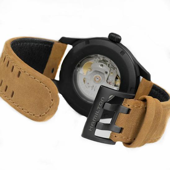 Hamilton Мужские швейцарские часы Khaki Field H70665533. Механические с автоподзаводом. Пружина механизма заводится автоматически благодаря естественным движениям владельца в процессе ежедневной носки часов. На стрелки и отметки нанесен светонакопительный состав, благодаря этому считывать информацию с циферблата возможно и в темноте. Ремешок изготовлен из кожи. Гибкость такого ремешка позволяет точно регулировать посадку часов на руке. Корпус изготовлен из высокопрочного титана. Сапфировое стекло. Искусственно изготовленное стекло с высокой прочностью и устойчивостью к царапинам. Часы являются водонепроницаемыми до 10 Бар. Цвет корпуса: Коричневый. Цвет корпуса: Черный. Цвет циферблата: Черный. Толщина: 11.5 мм. Гарантия: 2 года.