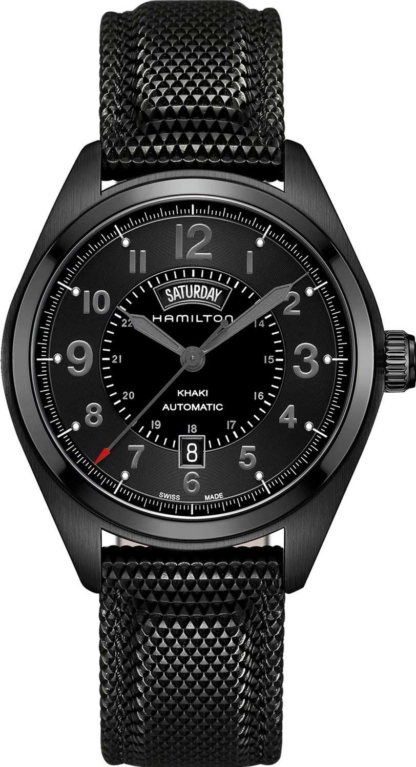 Hamilton Мужские швейцарские часы Khaki Field H70695735. Механические с автоподзаводом. Пружина механизма заводится автоматически благодаря естественным движениям владельца в процессе ежедневной носки часов. Ремешок изготовлен из кожи. После настройки автоматический календарь всегда отображает точную дату. Отображение времени возможно в 12-часовом или 24-часовом формате. Корпус изготовлен из высококачественной нержавеющей стали 316L с высокими антикоррозийными свойствами. Сапфировое стекло. Искусственно изготовленное стекло с высокой прочностью и устойчивостью к царапинам. Часы являются водонепроницаемыми до 5 Бар. Цвет циферблата: Черный. Цвет корпуса: Черный. Толщина: 11 мм. Гарантия: 2 года.