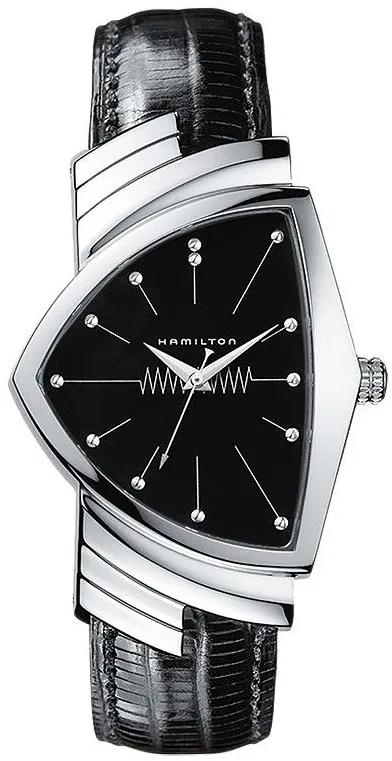 Мужские наручные часы Hamilton Ventura H24411732. Точный кварцевый механизм с аналоговой индикацией. Корпус изготовлен из высококачественной нержавеющей стали 316L с высокими антикоррозийными свойствами. Ремешок изготовлен из кожи. Прочное, устойчивое к царапинам минеральное стекло защищает часы от повреждений. Часы являются водонепроницаемыми до 5 Бар. Цвет корпуса: Серебристый. Цвет циферблата: Черный. Гарантия: 2 года.