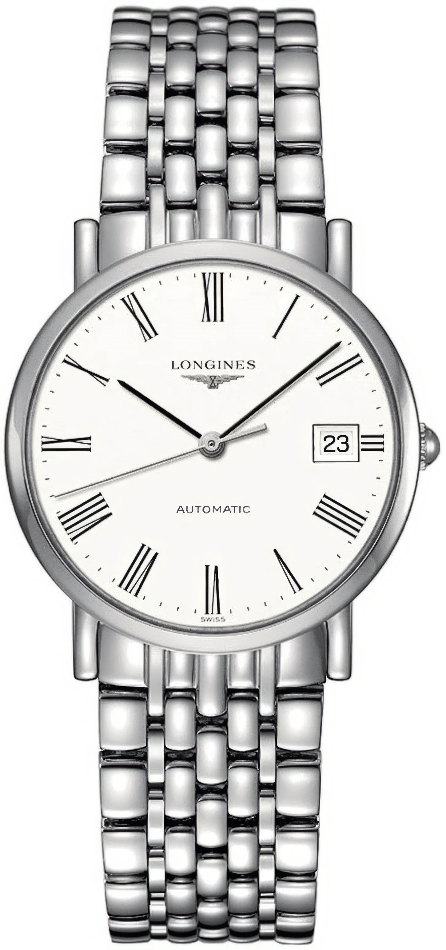 Элегантные автоматические женские часы Longines с белым циферблатом. Диаметр: 34,5 мм. Индикация даты. Запас хода 40 часов. Прозрачная задняя крышка. Римские цифры. Браслет: нержавеющая сталь 316L. Циферблат защищен устойчивым к царапинам сапфировым стеклом. Водозащита 30 метров (3 АТМ).