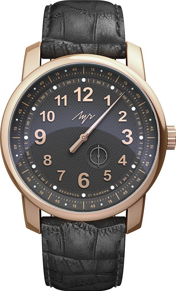 Мужские наручные часы Luch Большой Однострелочник 77497692. Механические с автоподзаводом. Пружина механизма заводится автоматически благодаря естественным движениям владельца в процессе ежедневной носки часов. На стрелки и отметки нанесен светонакопительный состав, благодаря этому считывать информацию с циферблата возможно и в темноте. Ремешок изготовлен из кожи. Гибкость такого ремешка позволяет точно регулировать посадку часов на руке. Корпус изготовлен из высококачественной нержавеющей стали 316L с высокими антикоррозийными свойствами. Сапфировое стекло. Искусственно изготовленное стекло с высокой прочностью и устойчивостью к царапинам. Часы являются водонепроницаемыми до 5 Бар. Цвет корпуса: Черный. Цвет корпуса: Розовое золото. Цвет циферблата: Черный. Толщина: 10.9 мм. Гарантия: 2 года.