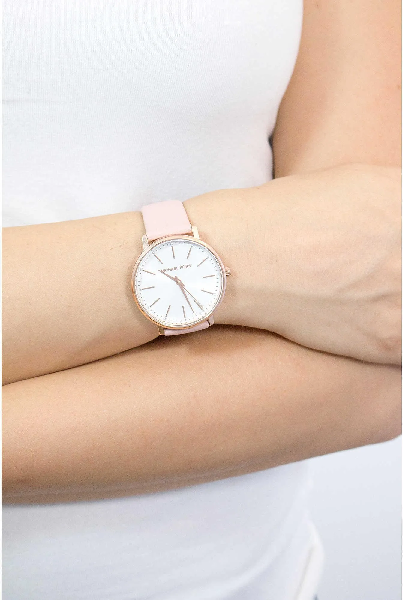 Классические элегантные часы для женщин Pyper Rose Gold-Tone Leather Watch. Крупный изящный корпус. Из нержавеющей стали с покрытием. Ремешок из натуральной кожи.