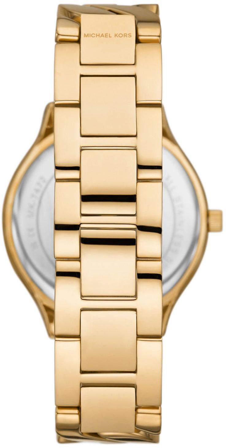 Женские наручные часы Michael Kors Slim Runway MK7472. Точный кварцевый механизм с аналоговой индикацией. Браслет из нержавеющей стали. Браслет из нержавеющей стали. Прочное, устойчивое к царапинам минеральное стекло защищает часы от повреждений. Часы являются водонепроницаемыми до 5 Бар. Цвет циферблата: Желтое золото. Цвет корпуса: Белый. Толщина: 8 мм. Гарантия: 2 года.