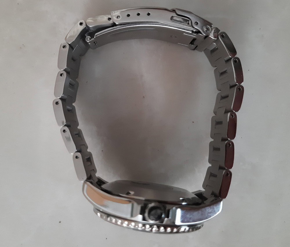 •Браслет с литыми звеньями из нерж. стали, раскладывающаяся застежка с кнопками и дополнительным фиксатором.