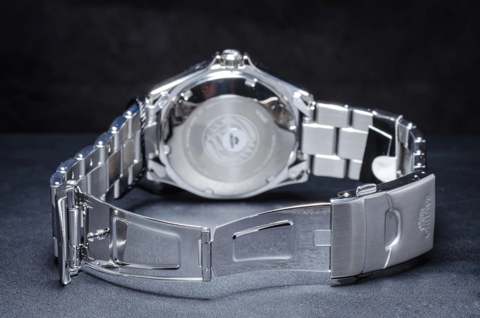 Автоматический механизм ORIENT F69(AA) (22 рубиновых камня, частота полуколебаний баланса 21600 полуоб/час. Автоподзавод. Возможность ручного завода. Противоударное устройство оси баланса.). Центральная секундная стрелка. Окошко даты и дня недели. • Запас хода более 40 часов. • Точность хода не хуже -15...+25 сек./в сутки. • Функция стоп-секунда (остановка секундной стрелки для установки точного времени)• Сапфировое стекло устойчивое к царапанию. • Светонакопительный состав на стрелках и маркерах часа. • Корпус из высококачественного стального сплава 316L с высокими антикоррозийными свойствами. • Однонаправленный поворотный безель. • Завинчивающаяся заводная головка. • Водозащита до 20 АТМ. • Литой браслет из нержавеющей стали. • Надежный браслетный замок с тройным сгибом.
