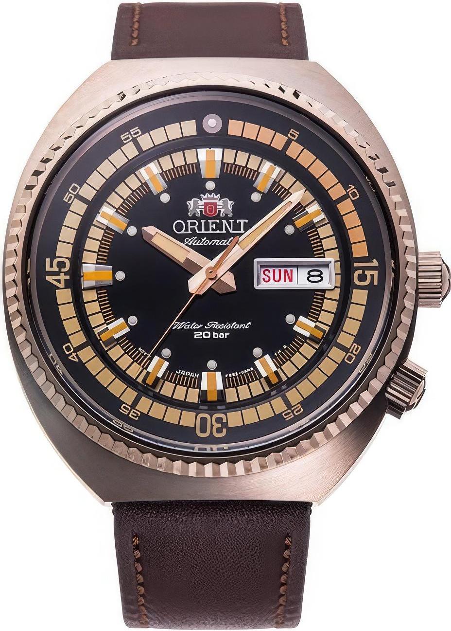 Мужские наручные часы Orient Automatic RA-AA0E06B. Механические с ручным подзаводом. Ремешок изготовлен из кожи. Браслет из нержавеющей стали. Прочное, устойчивое к царапинам минеральное стекло защищает часы от повреждений. На циферблате отображается текущее число месяца и день недели. Часы являются водонепроницаемыми до 20 Бар. Цвет циферблата: Розовое золото. Цвет корпуса: Черный. На стрелки и отметки нанесен светонакопительный состав, благодаря этому считывать информацию с циферблата возможно и в темноте. Толщина: 14 мм. Гарантия: 2 года.