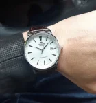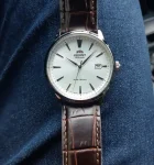 Мужские наручные часы Orient Automatic RA-AC0F07S. Механические с автоподзаводом. Пружина механизма заводится автоматически благодаря естественным движениям владельца в процессе ежедневной носки часов. Корпус изготовлен из высококачественной нержавеющей стали 316L с высокими антикоррозийными свойствами. На циферблате отображается текущее число месяца. Ремешок изготовлен из кожи. Прочное, устойчивое к царапинам минеральное стекло защищает часы от повреждений. Часы являются водонепроницаемыми до 5 Бар. Цвет корпуса: Серебристый. Цвет циферблата: Серебристый. Ширина (с заводной головкой): 42мм. Толщина: 11мм. Гарантия: 2 года.