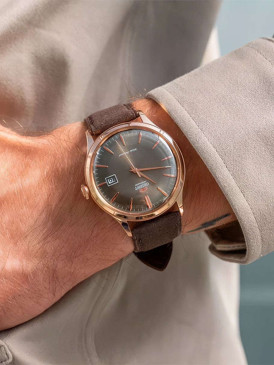 Мужские наручные часы Orient Automatic RA-AC0P04Y. Механические с автоподзаводом. Пружина механизма заводится автоматически благодаря естественным движениям владельца в процессе ежедневной носки часов. Ремешок изготовлен из кожи. Браслет из нержавеющей стали. Прочное, устойчивое к царапинам минеральное стекло защищает часы от повреждений. На циферблате отображается текущее число месяца. Часы являются водонепроницаемыми до 3 Бар. Цвет циферблата: Розовое золото. Цвет корпуса: Коричневый. Высота (с ушками): 49 мм. Толщина: 12 мм. Гарантия: 2 года.