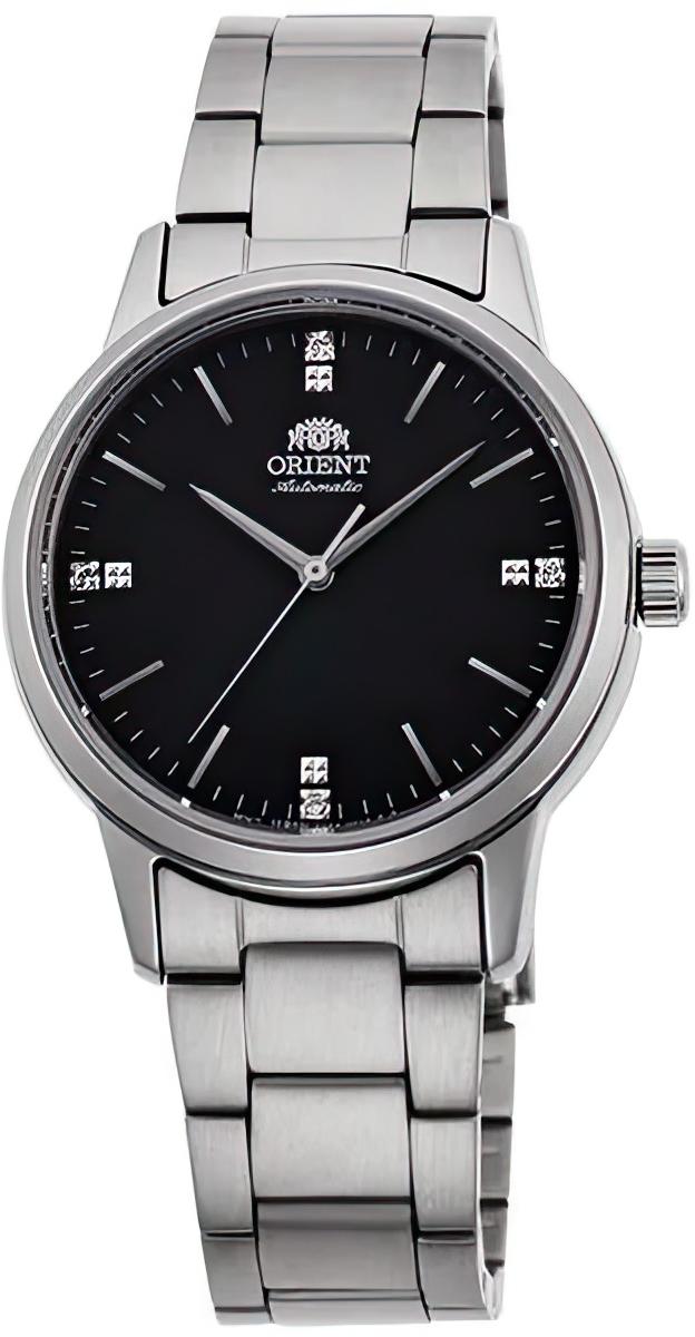 Женские механические часы с автоподзаводом. Центральные часовая, минутная и секундная стрелки. Черный циферблат украшен фианитами. Круглый корпус выполнен из матовой нержавеющей стали. Диаметр корпуса составляет 32 мм. Стальной браслет, раскладывающаяся застежка. Прочное минеральное стекло устойчивое к мелким механическим повреждениям. Водостойкость WR 100 (плавание без погружения).
